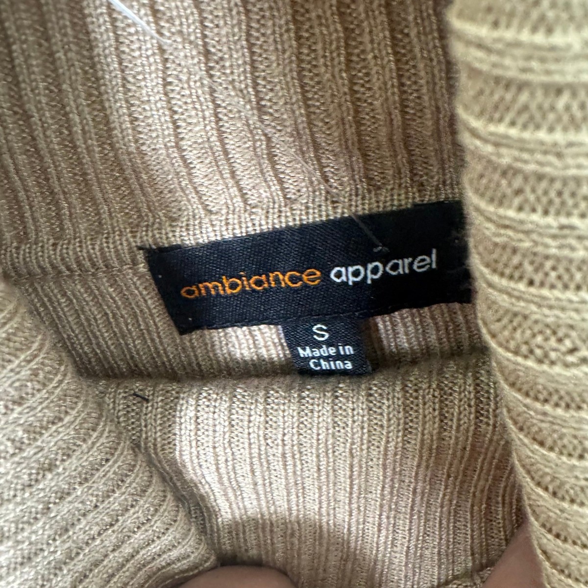 Keywords: Ambiance Apparel, turtleneck, sweater, ribbed knit, long sleeve, beige, casual, pullover, women's, top, small, S, knitwear, cozy, stylish