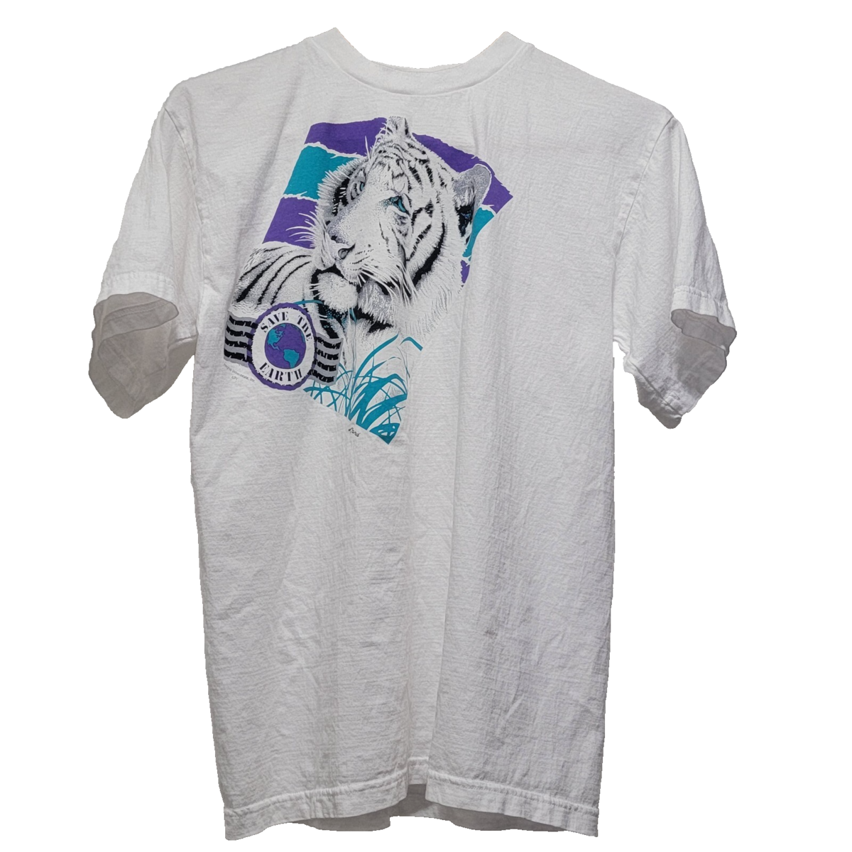 Vintage Danny Boy Save The Earth White Tiger Shirt USA Men's M
