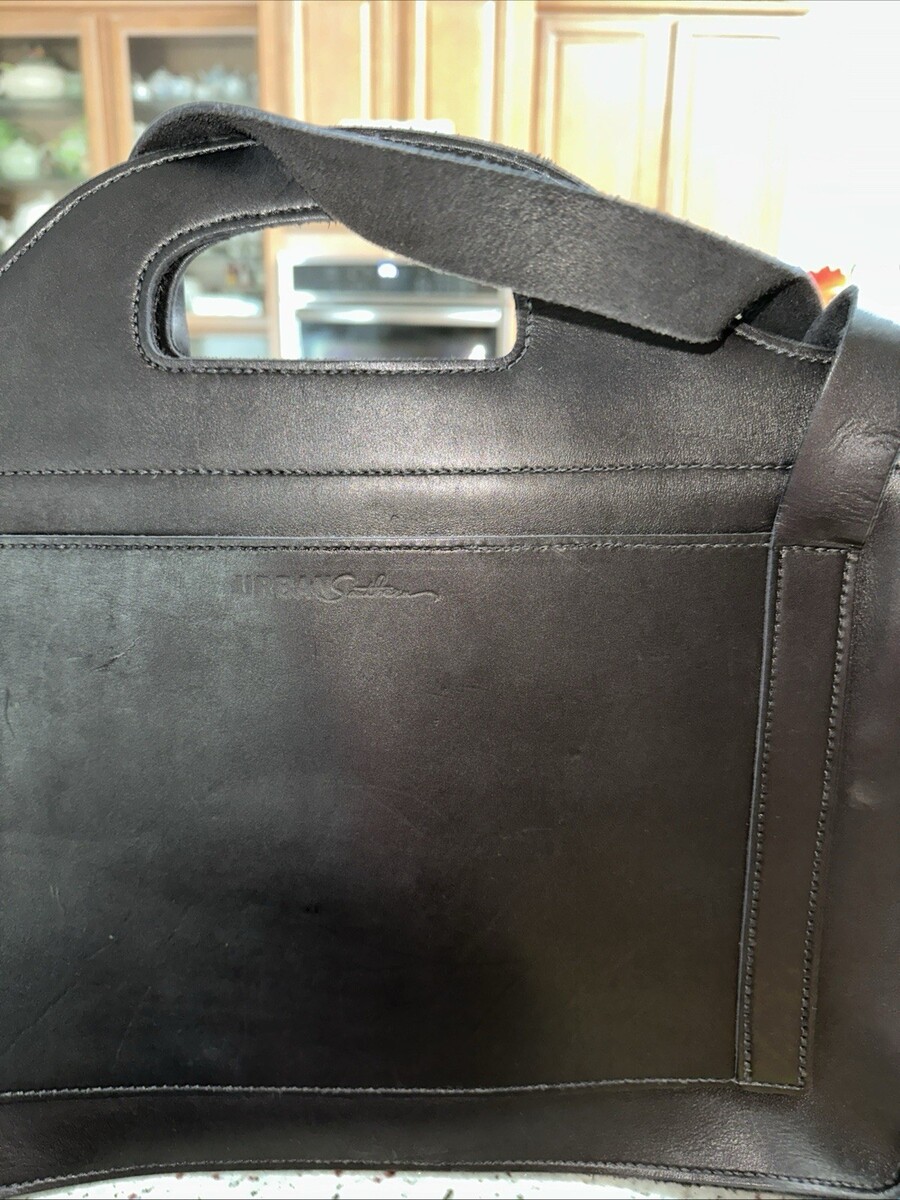 Urban Southern Franklin Blk Full Grain Loth Bras Hardware Computer Bag $295 NEW
