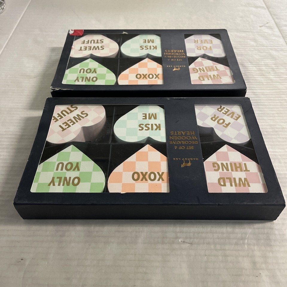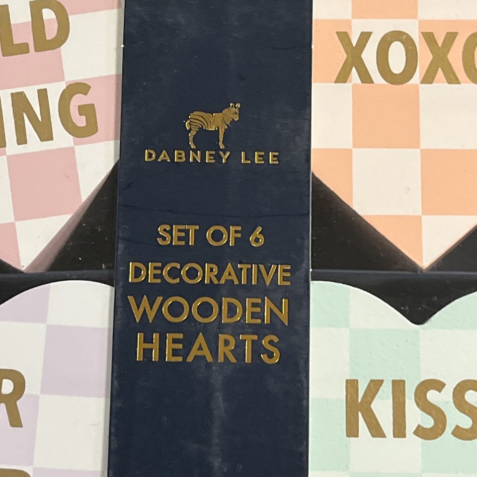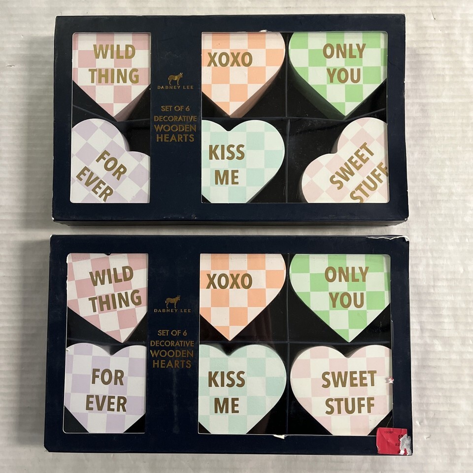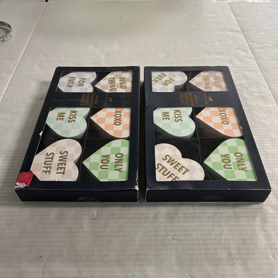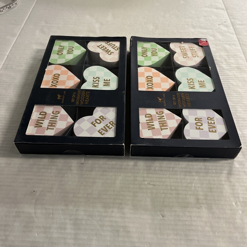 Dabney Wooden Hearts Decor Valentines Day Mixed Pastel Message 6 EA Set Of 2