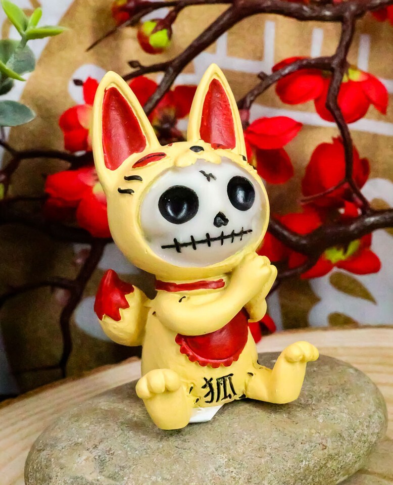 Ebros Japanese Beckoning Fox Maneki Kitsune Furry Bones Figurine 3" Tall