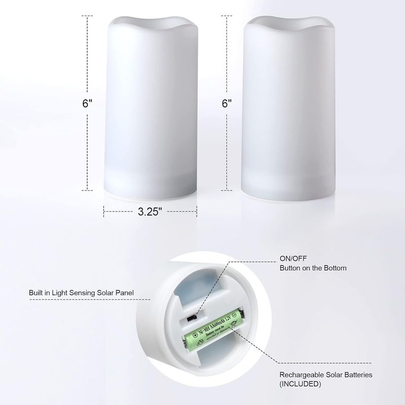 Solar Flameless Candles Outdoor Waterproof,Dusk to Dawn Outdoor Lighting, Flick