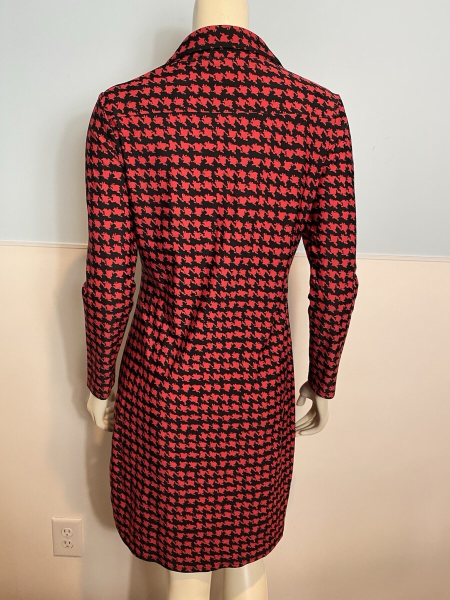 Jude Connally Red and Black Checked Collar Long Sleeve Knit Dress Size S