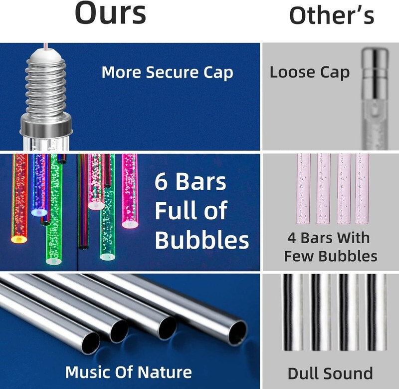 Our special acrylic bars also have special features. Unlike the other similar wind chimes, there will be more bubbles in the acrylic bars to make them look even more lively, just like the boiling water.