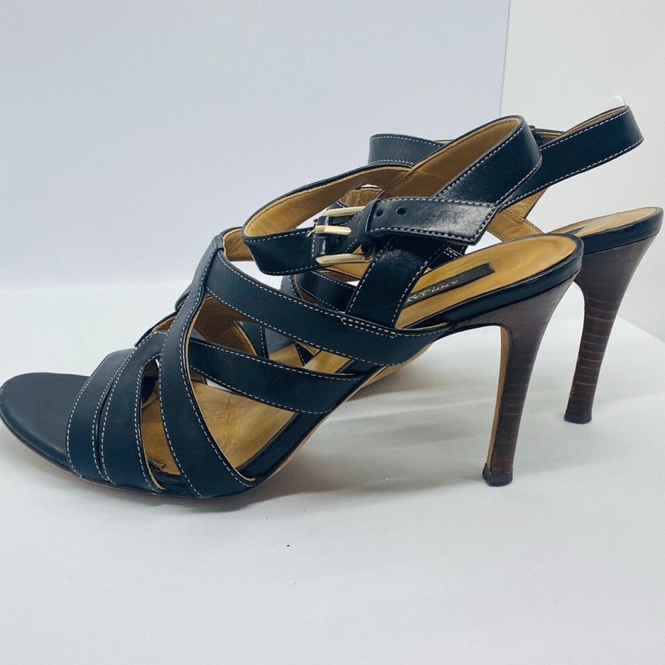 Ann Taylor Black Leather Strappy Stiletto Heel Sandals 8M