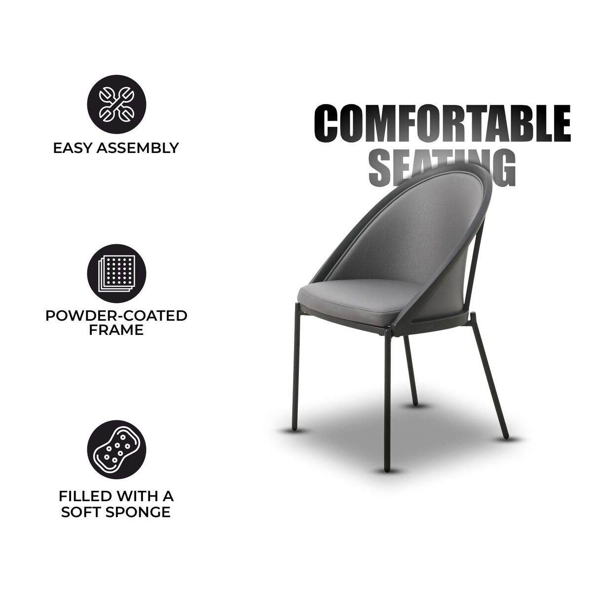 Experience the perfect blend of elegance and ergonomics with our dining room chair, featuring a soft surface upholstery that is known for its breathable nature, and a curved backrest design. It not only enhances the overall feel of your dining or living area but also promotes proper posture, allowing you to maintain a well-seated position during meals and gatherings. Enhanced with exquisite vinyl upholstery and high-density sponge filling on both the seat and backrest. The combination of these materials not only provides a comfortable and cushioned seating experience but also ensures optimal airflow, making our upholstered dining chair more relaxing for extended periods of sitting. Our contemporary dining chair is made of sturdy steel construction and vinyl material which is a strong and durable fabric. The metal legs and frame provide excellent stability by supporting weights of up to 300 lbs. It is also highly resistant to wear, corrosion, and rust, while the seat is known to be tough and long-lasting, making it perfect for daily use. Our accent kitchen chair is not limited to formal dining rooms; it's also a stylish accent chair suitable for your living room, bedroom, or home office. It also complements a variety of dining environments and design preferences, whether you favor contemporary or classic styles. You can easily incorporate them into various areas of your home due to their flexibility. Equipped with plastic glides on its feet to safeguard your floors from scratches and other damage. The dining table chairโs protective caps ensure that the chair can be used safely on various types of surfaces whether you have hardwood floors, tiles, or carpets. Regular care of this dining side chair involves a gentle wipe-down using a dry cloth to maintain its pristine appearance. It's also important to avoid using abrasive cleaners as they can cause damage and discoloration over time that can compromise the chair's overall appeal. This modern accent chairs comes with straightforward assembly instructions, making it easy for you to set it up quickly and without any hassle. The assembly process is designed to be user-friendly, requiring only a few minutes of your time.