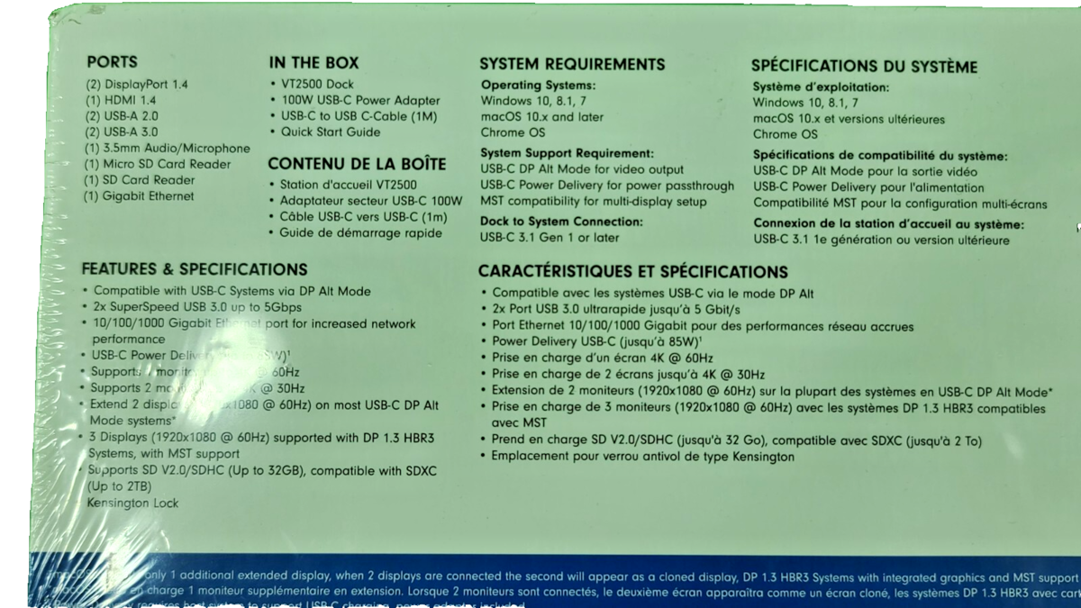 NEW SEALED VisionTek VT2500 Multi Display Docking Station 85 Watts Black