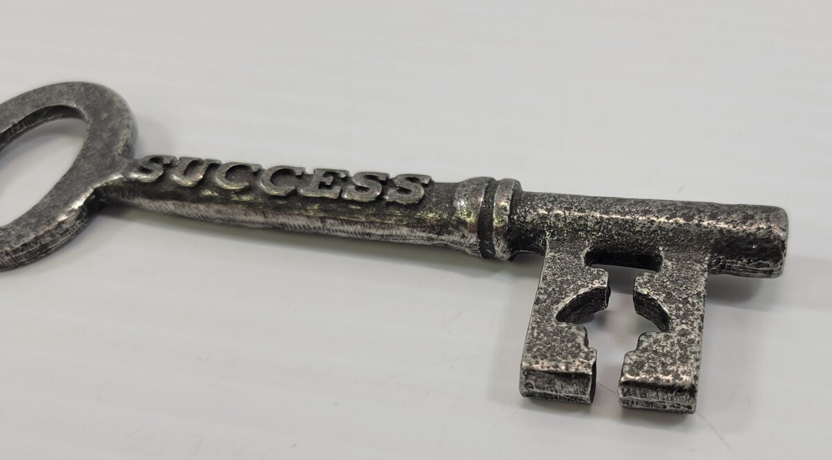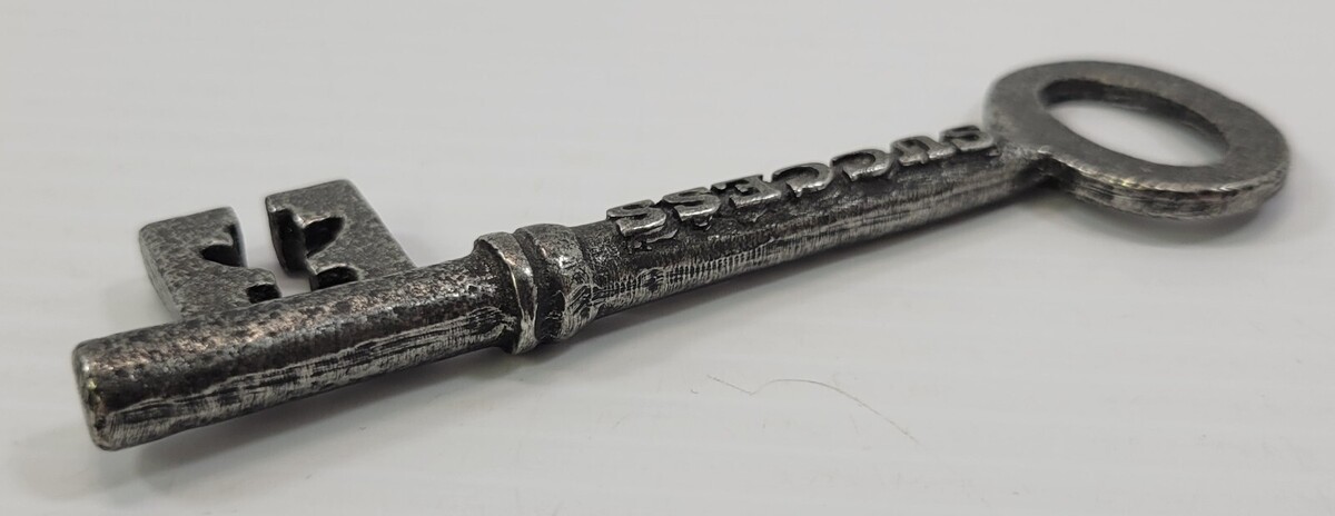 *B53) Vintage Cassiopeia Pewter Key to Life Success Victorian Gate Skeleton Key