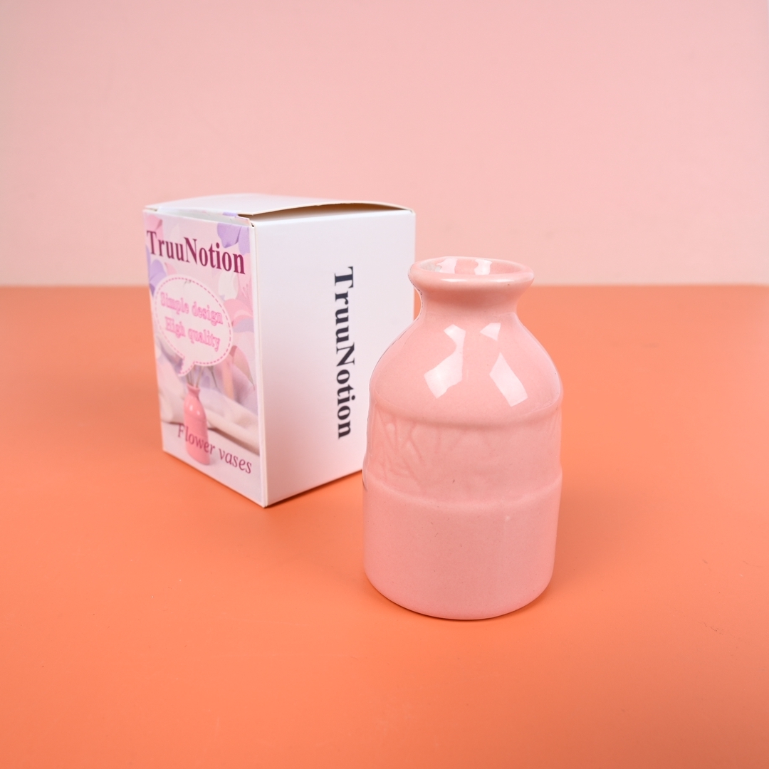 TruuNotion Pink Minimalist Ceramic Flower Vase Small Decorative Flower Vase