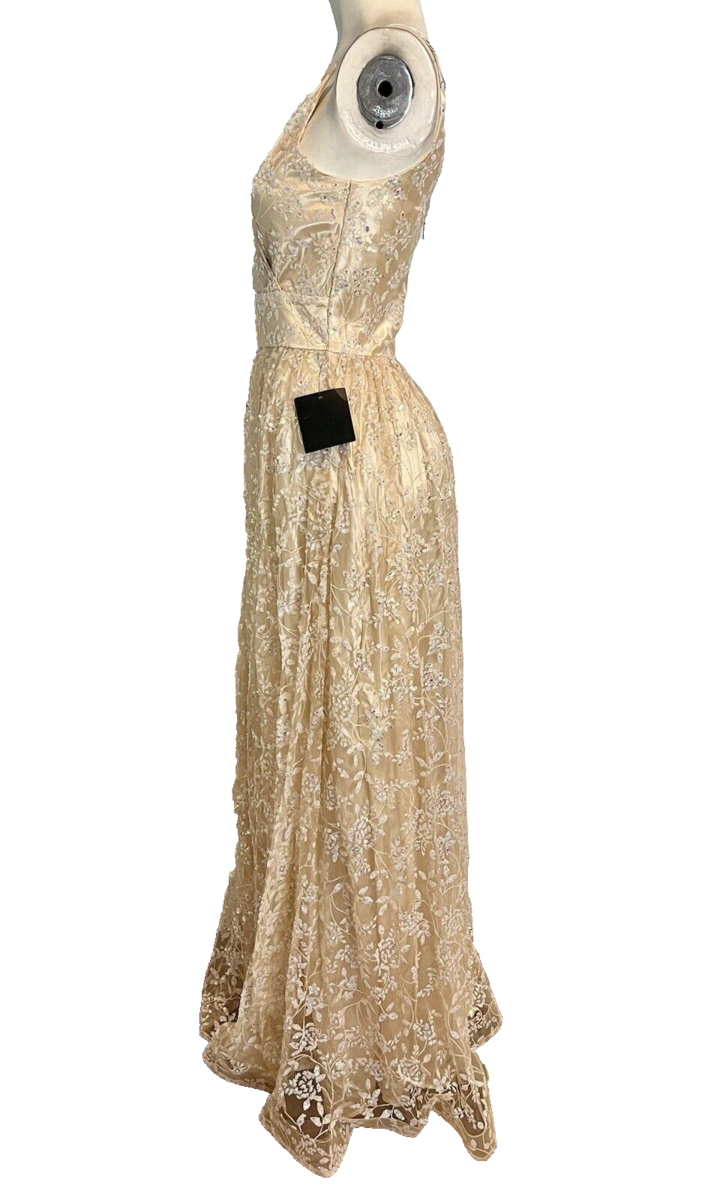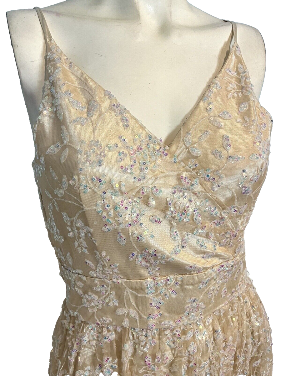 Soiéblu Women's Sequined Spaghetti Strap Formal Maxi Dress Blush Sz 8 NEW
