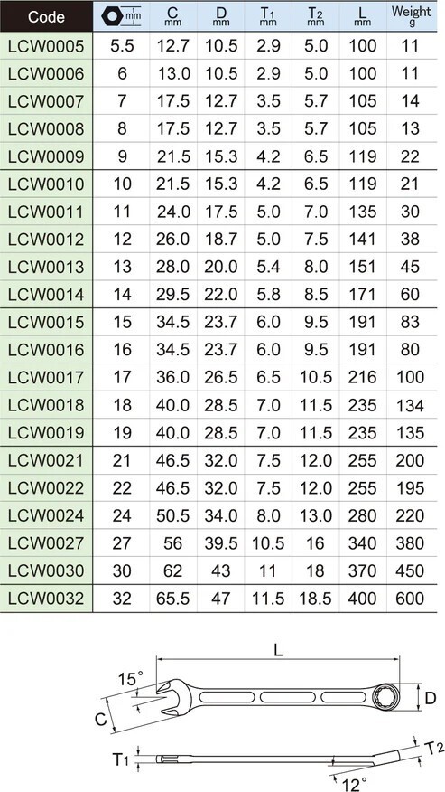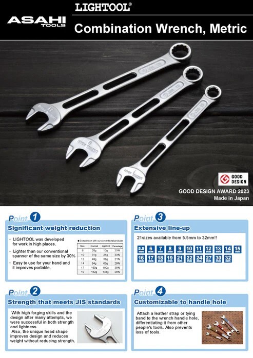 Asahi LIGHTOOL LCW-series Combination Wrench 5.5mm - 32 mm individual sizes (select the size you need)