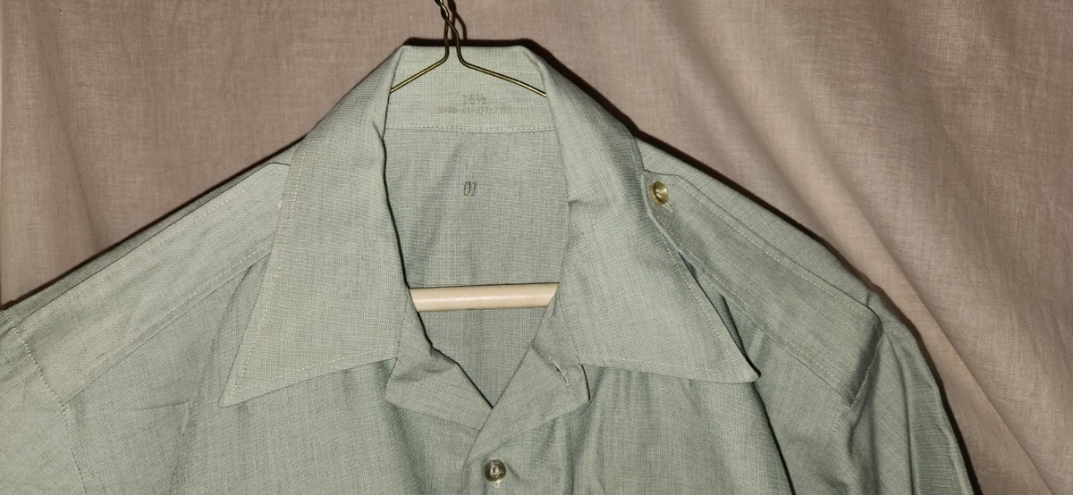 Good used condition military shirt. Tags missing. Actual size is unknown. Measures approx 24 inches pit to pit.