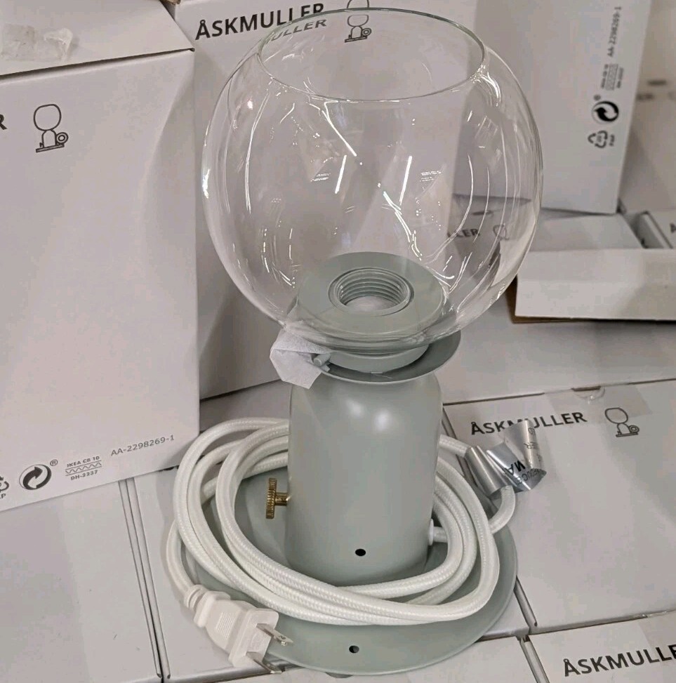 IKEA ASKMULLER Table Lamp Dimmable Green Gray 9" With LED Bulb New 904.999.00