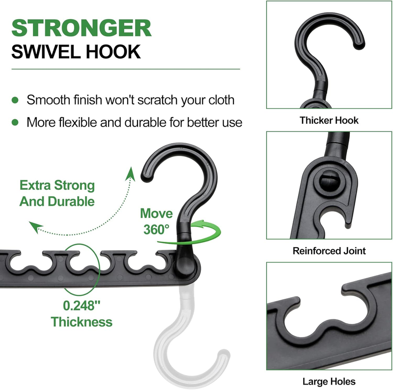 Dorm room essentials hangers with 360 degrees rotation hooks for both horizontal and vertical positions for optimal space efficiency to find you want clothes!