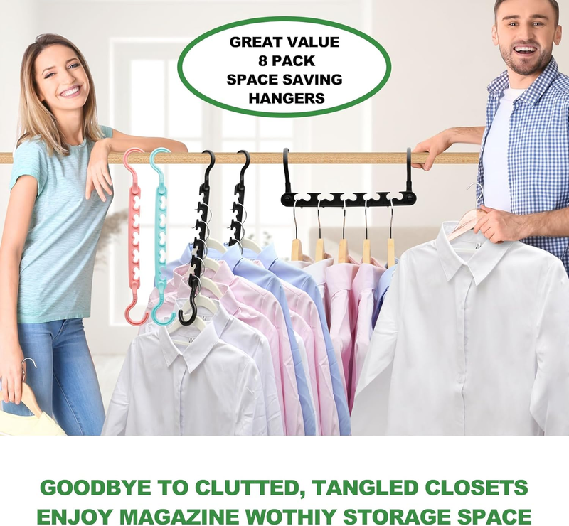 Great Value 8 Pack Colorful Magic Space Saving Closet Hangers - Your Home Essentials, Apartment Essentials, and Dorm Room Essentials for College