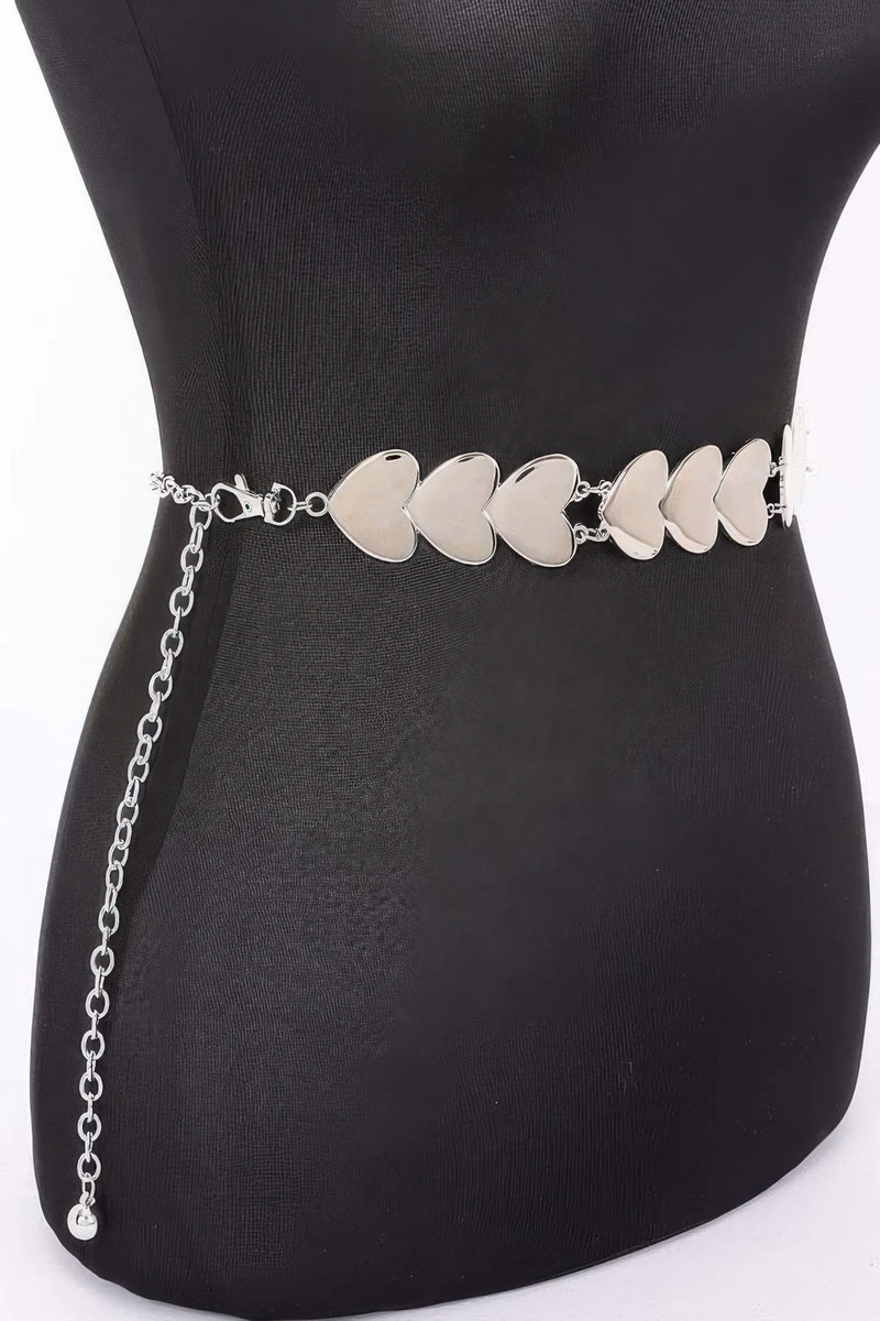 This belt offers the perfect combination of romance and edge. Its unique heart-shaped charms add a fun, playful element to your wardrobe while the metal chain design brings a touch of sophistication. It's the perfect accessory to express your love for fashion in a chic way.