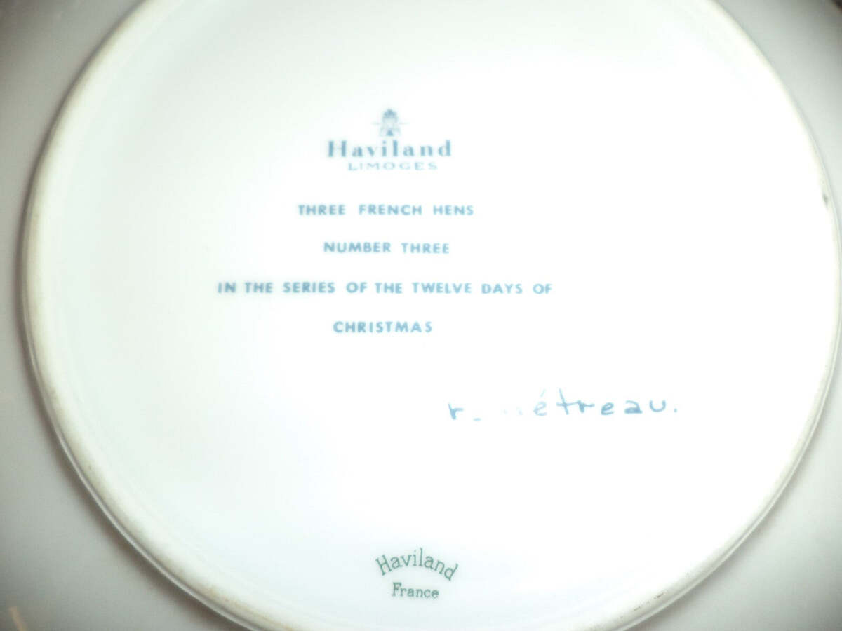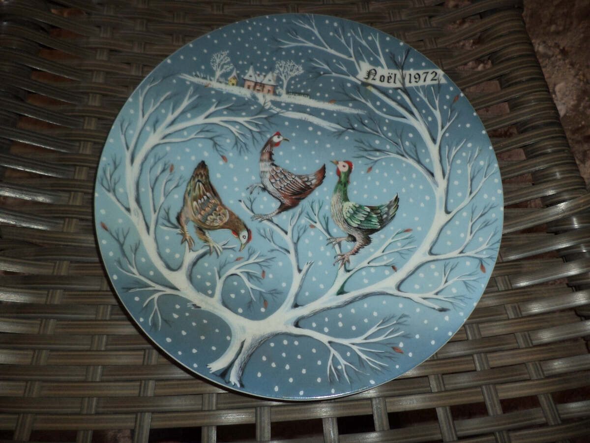 HAVILAND LIMOGES THREE FRENCH HENS 12 Days of Christmas Plate. Noel 1972