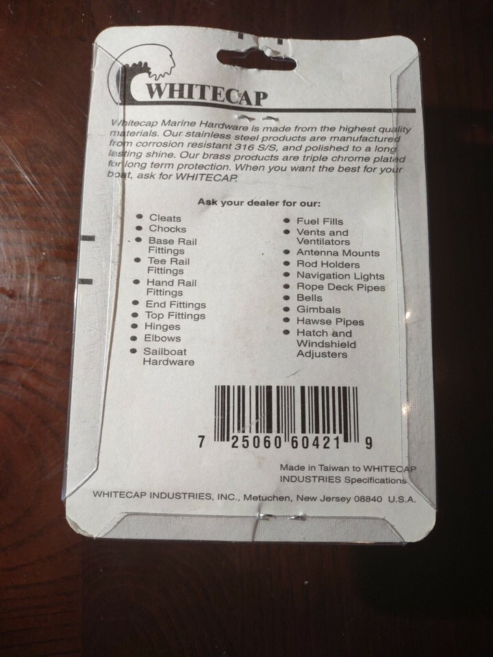 Whitecap 60 Degree Rectangular Base 316 Stainless Steel Tube 7/8". Inventory box number 951