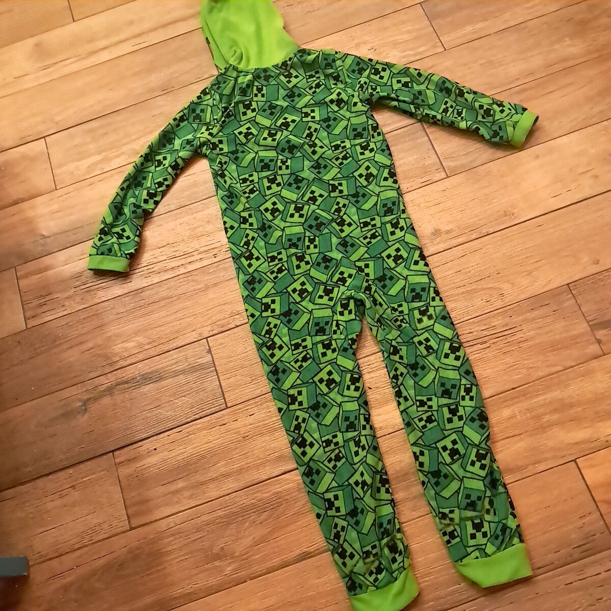 Minecraft Hooded Creeper Pajama sz MEDIUM kids unionsuit Long Sleeves hoodie pjs