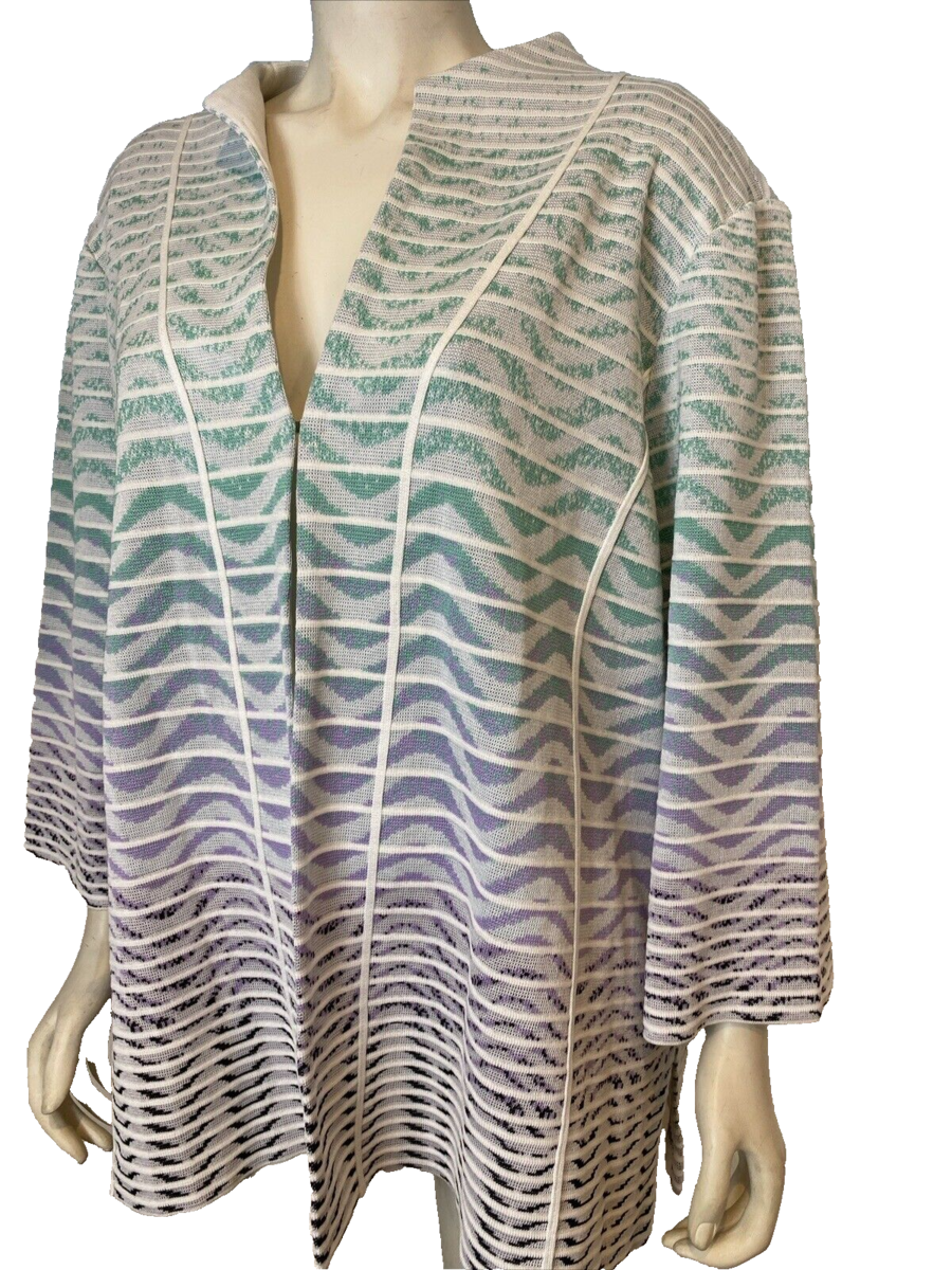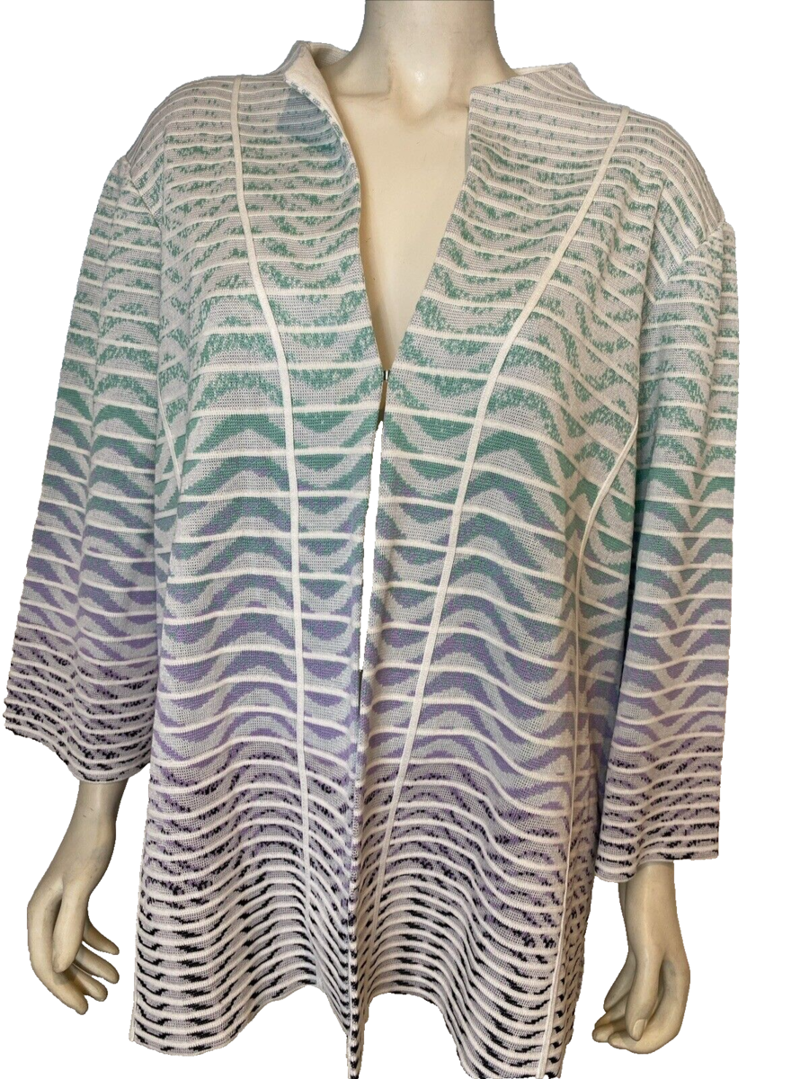 Ming Wang White, Green, Gray, Black Open 3/4 Sleeve Cardigan Size 3X