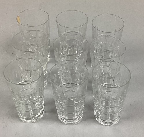 You are bidding on a set of 9 plaid style cordial glasses. These are in good, used condition