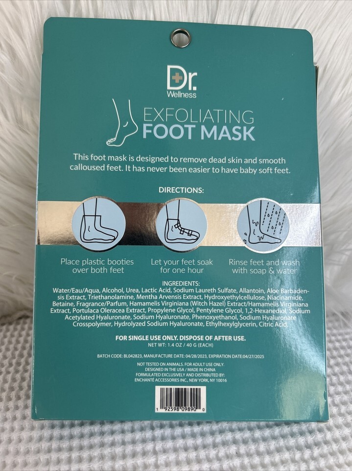 Dr. Wellness exfoliating foot mask mint scented 2 pairs-NEW!