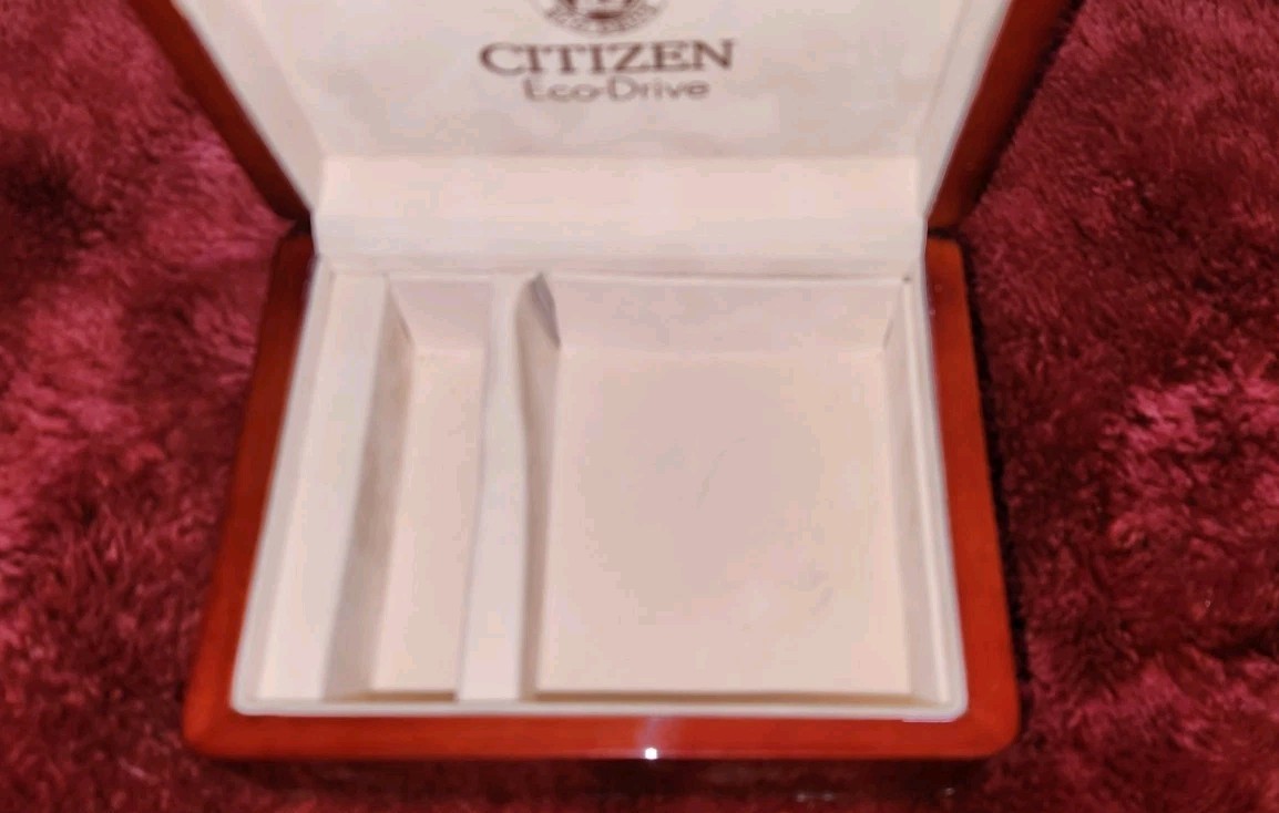 This is a Citizen watch box. Box only. No watch. Has some wear from storage. 2 compartment.