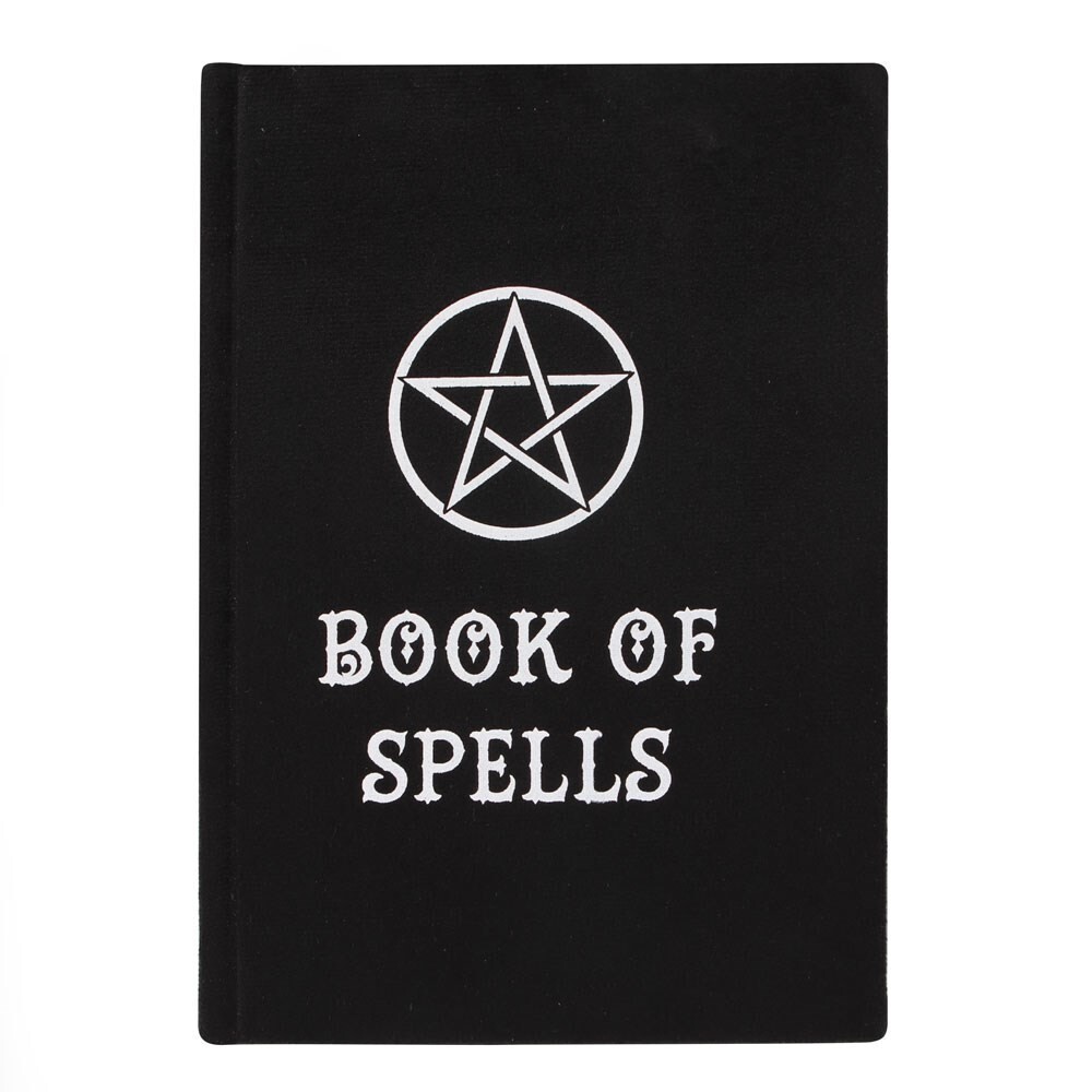 This Pentagram Book of Shadows has been finished in a velveteen material, giving it a soft and luxurious feel. Measures approximately 5.8 X 8.2 X .66 inches with 100 (200 counting both sides) lined pages and a matching black ribbon place marker.