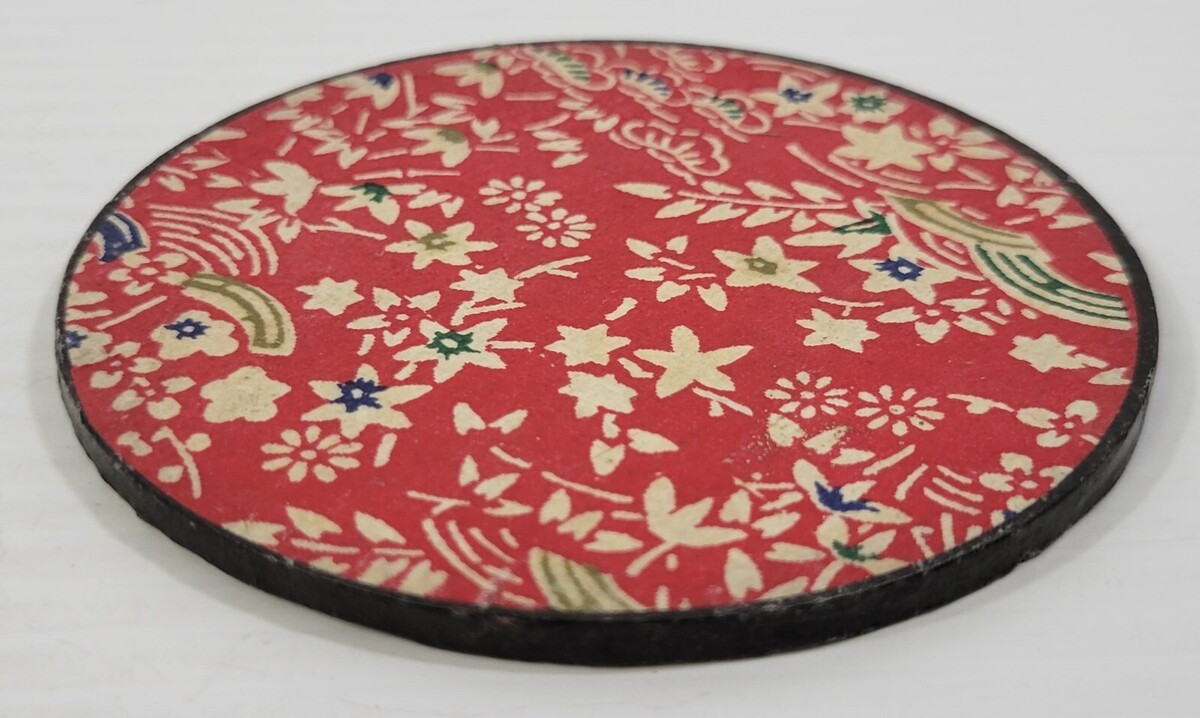 Vintage Set of 3 Floral Colorful Asian Round Carboard Coasters