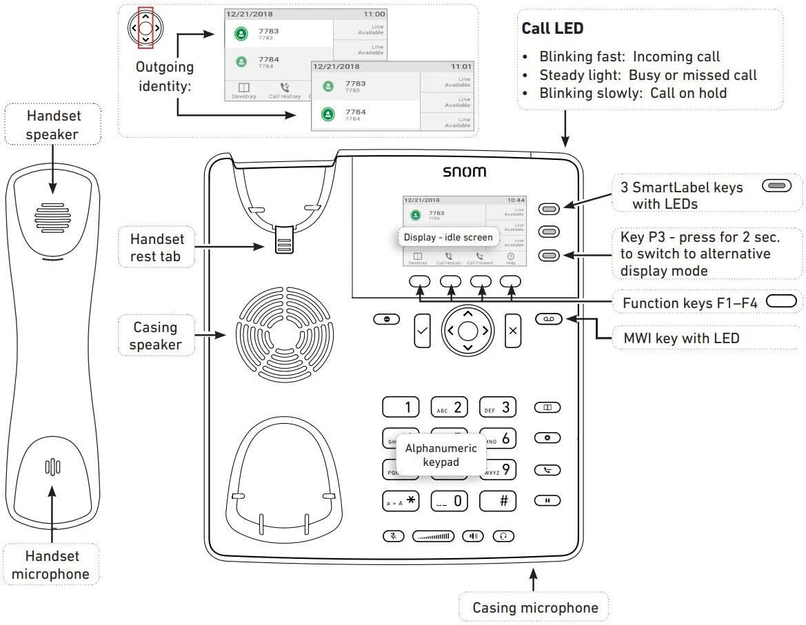 Product description: The Snom D717 convinces with a high-resolution colour display and the freely configurable Snom SmartLabel. A built-in ambient sensor ensures that the brightness of the phone display is always adjusted to the current lighting conditions in the room. This is both energy-saving and convenient. The telephone has 3 multi-coloured, self-labelling LED function keys, an integrated gigabit switch. Furthermore, a variety of accessories can be connected via the USB port.