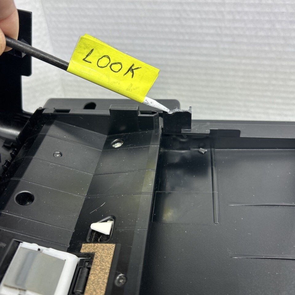***THE HINGE PINS THAT HOLD THE FEED TRAY ON ARE BROKEN AS SHOWN IN THE PICTURES ***