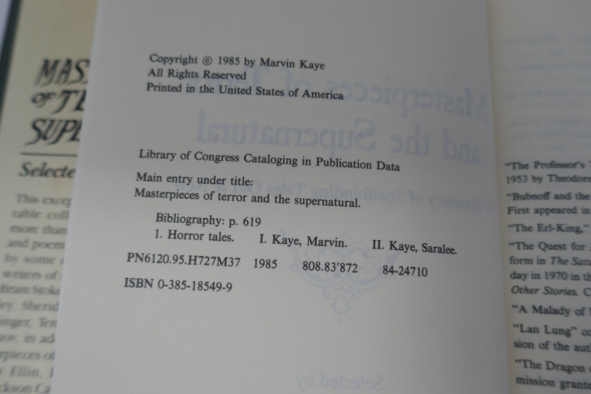 Masterpieces of Terror and the Supernatural by Marvin Kaye (1985, BCE) HCDJ