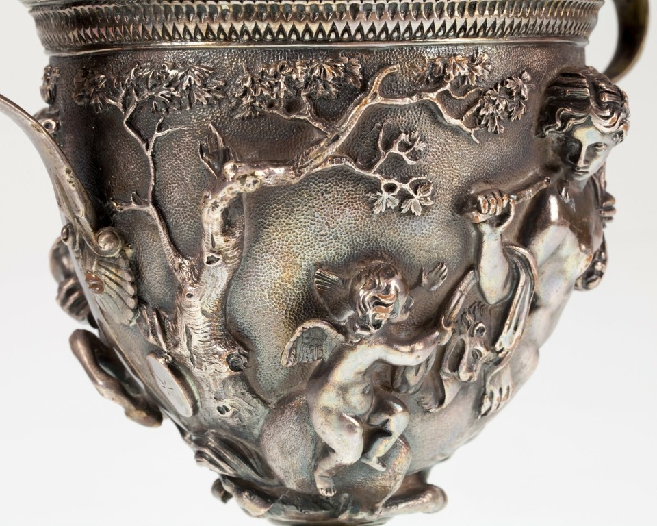 Elkington & Co. Silverplate Urn Trophy Cup with Neoclassical Figures Repousse