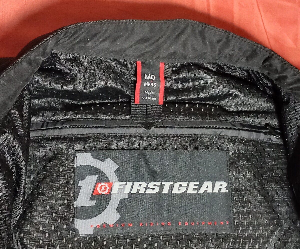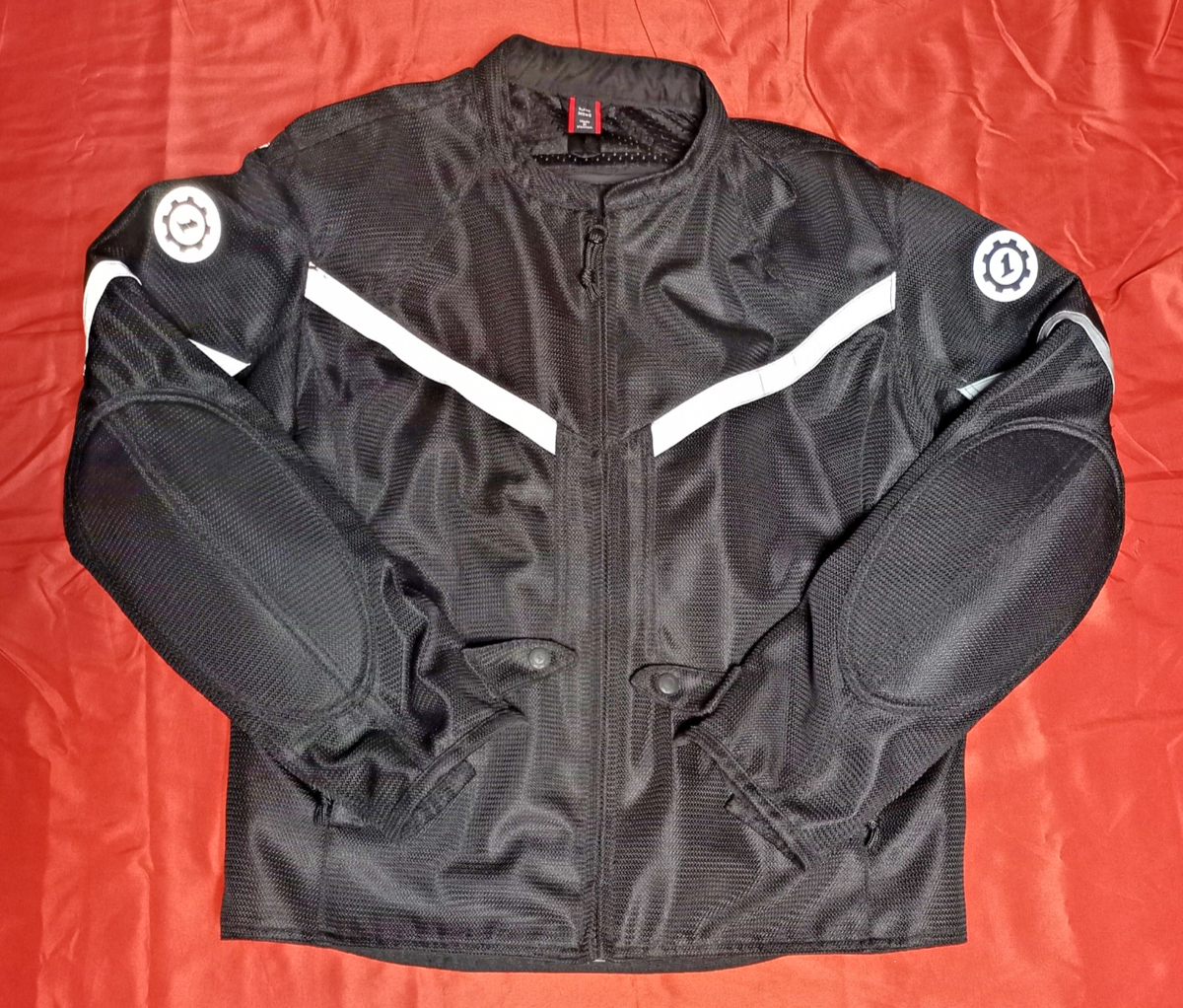 First Gear Rush Mesh Armored Padded Black Motorcycle Jacket Men's M