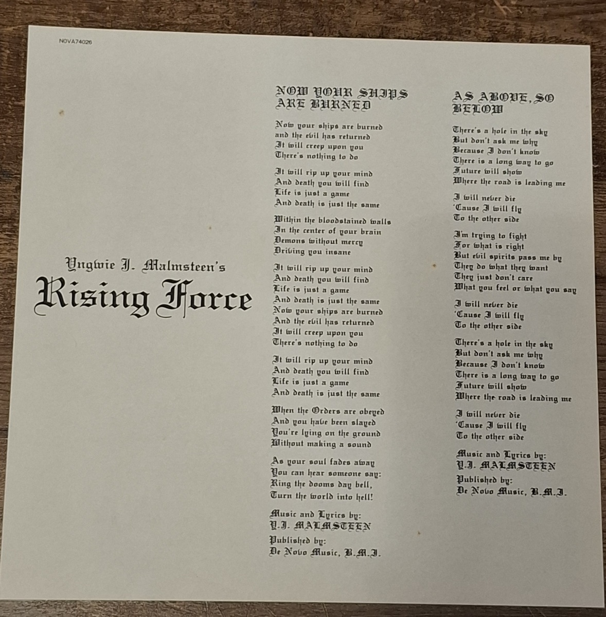 Yngwie J. Malmsteen – Rising Force LP Taiwan LP Nova Records NOVA 74026 EX!