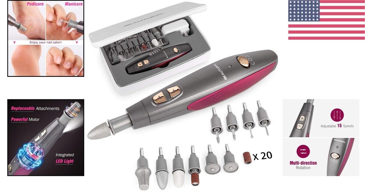 Professional Electric Manicure and Pedicure Kit with LED Light - 15 Speed