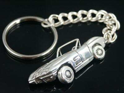 Sterling Silver.925........... 3/4 view Corvette Stingray key chain, Nicely detailed .... spoke wheels....3-D Front,hollowed back....2 1/2" link key chain...........Plate key ring.....Handsome item...makes a great gift.....Other American and European car marques in my store,FERRARI,AC Shelby Cobra,Porche 911,Mercedes Benz.......:Be sure to add me to your favorites list!....