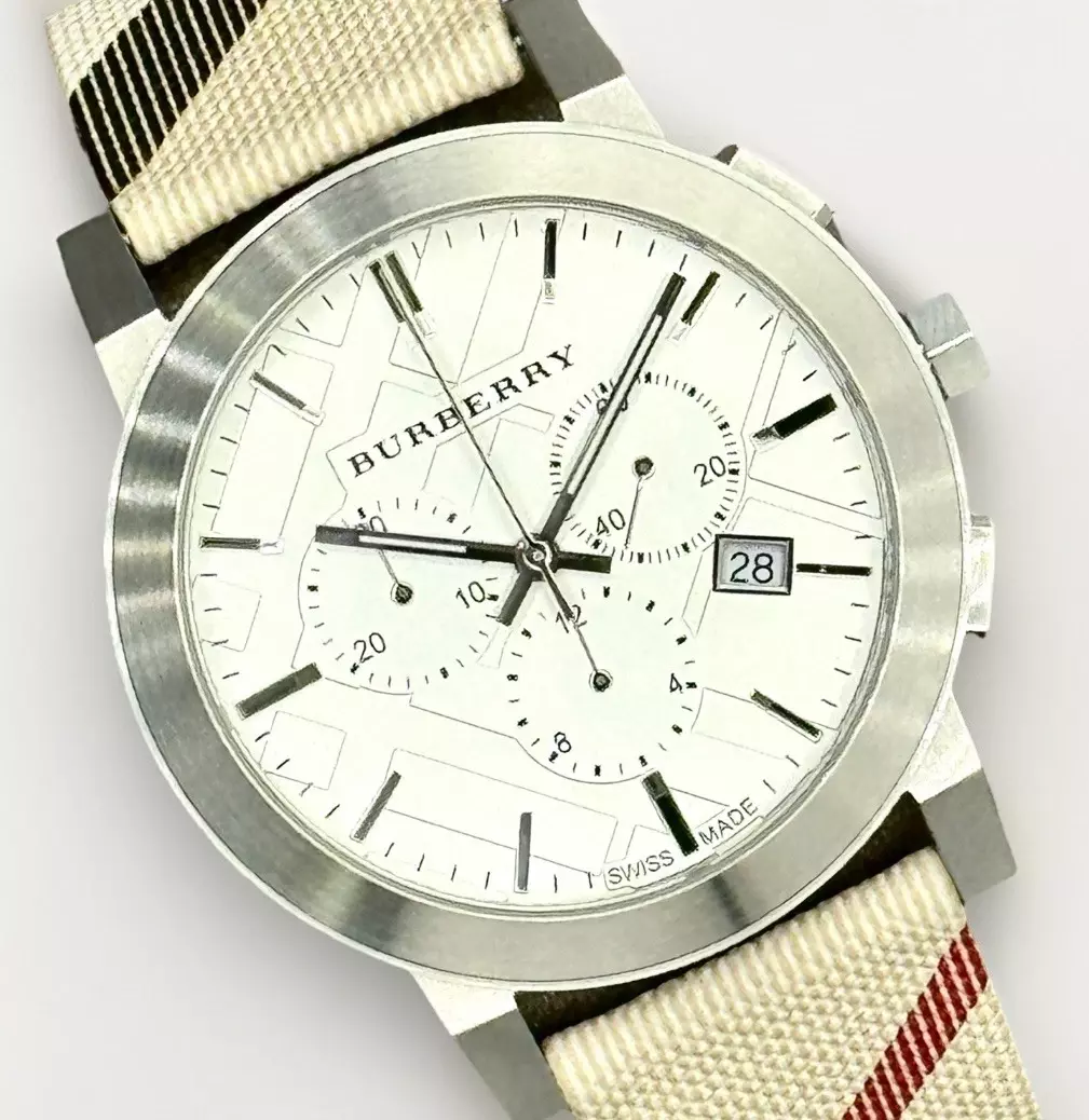 Burberry The City BU9357 Classic Chronograph 42mm Leather Silver Unisex Watch Ne