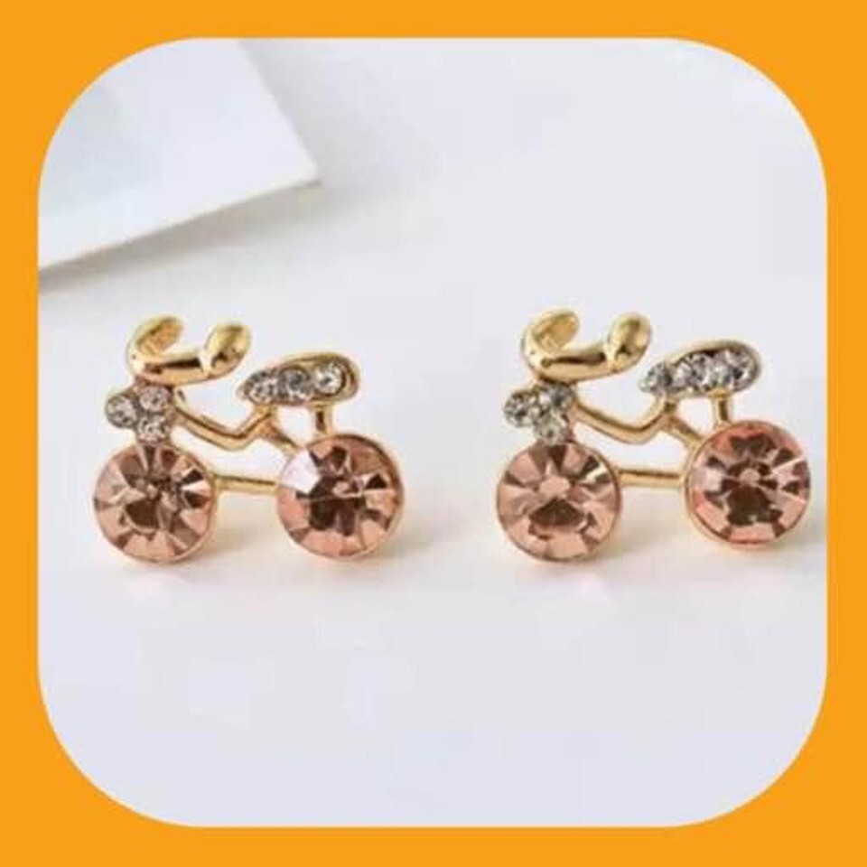 New Absolutely Darling Whimsical Mini Rhinestone AMBER Bicycle Stud Earrings