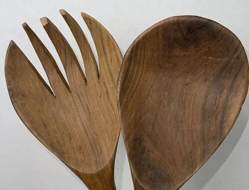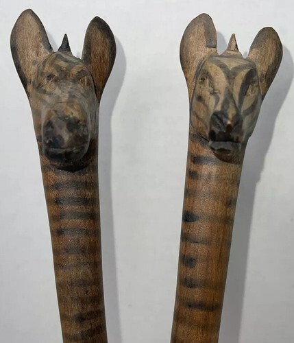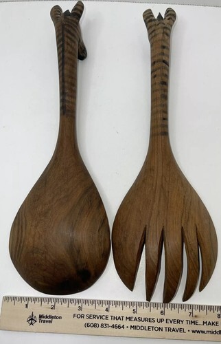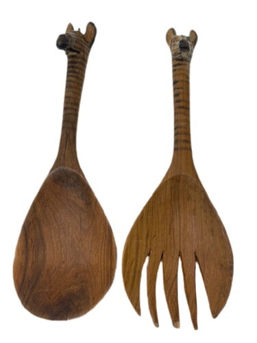 Hand Carved African Wooden Zebra Salad Spoon and Fork Serving Set.