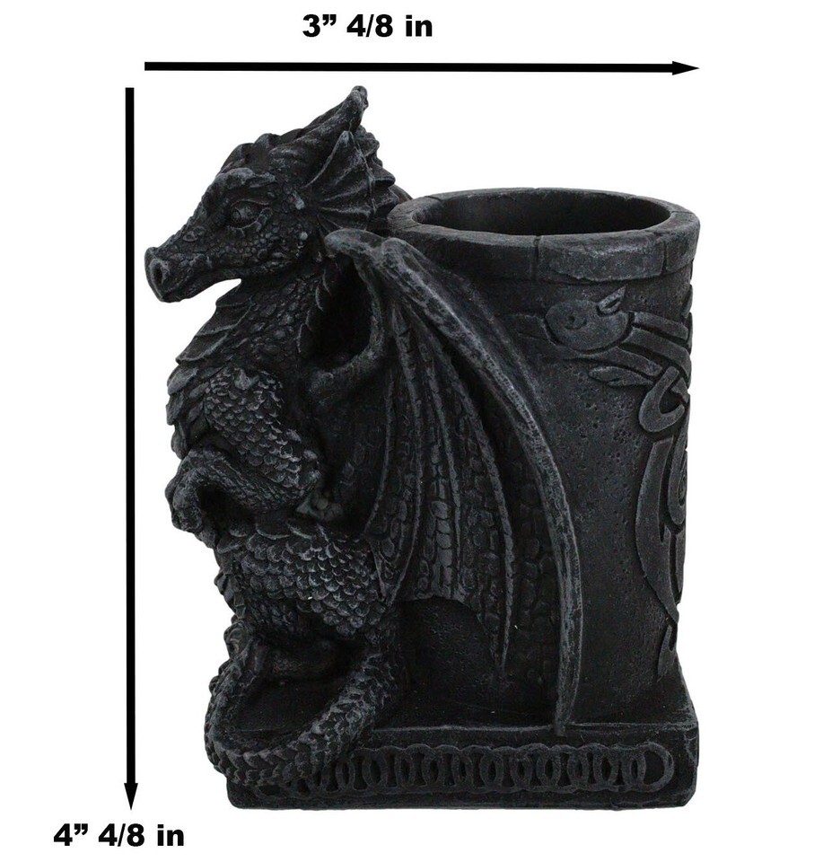 ? Whether you are looking for a functional stationery organizer for your desk or a dragon themed decor for your home, this Dragon Figurine is the perfect one for you! Sculpted with high quality resin, hand painted and polished, you will see great details on the figurine giving a touch of style and awesomeness to your setting.