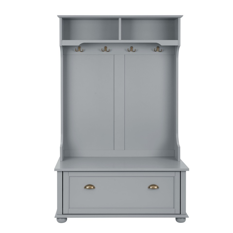 Coastal Hall Tree Bench with Storage & Shoe Cabinets - Gray