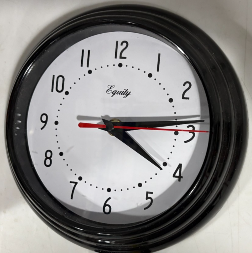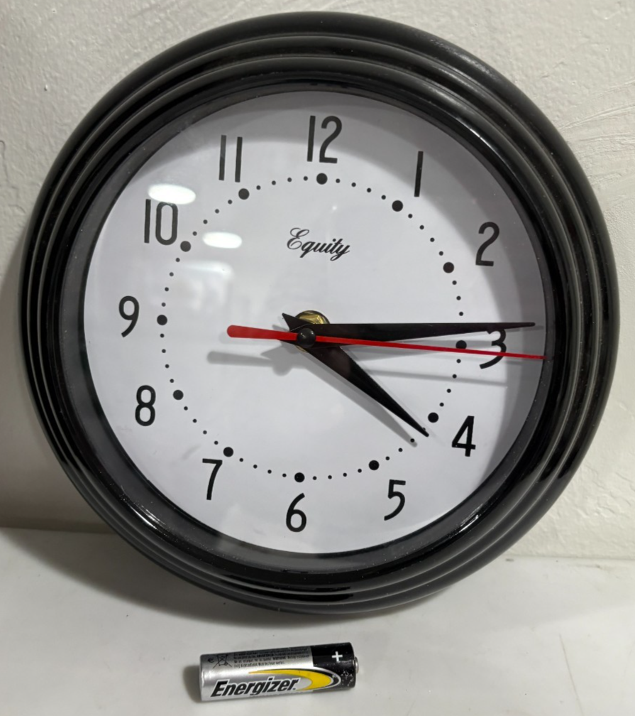 Equity Quartz 25013 Black Frame Plastic Standard Analog Wall Clock 8 inch NWOB