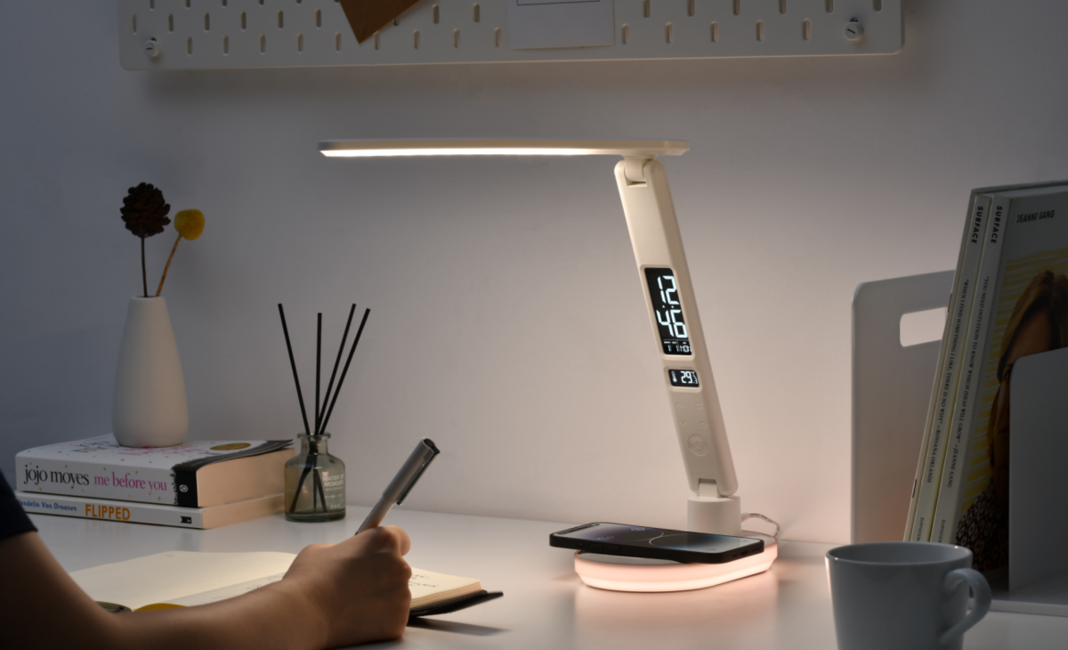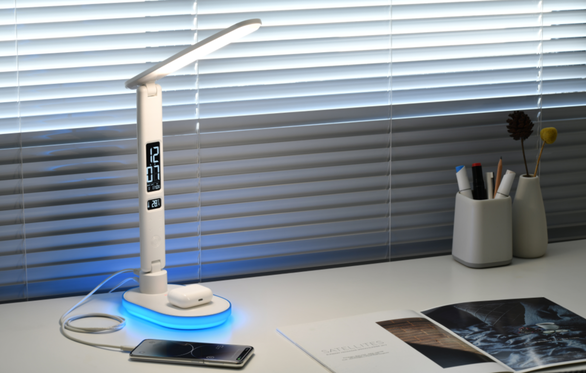 Foldable LED Desk Lamp with Wireless Charger & Digital Display