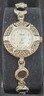 VINTAGE ELEGANT NETSUKE MARCASITE TOURMALINE STONES STAINLESS STEEL WOMEN WATCH