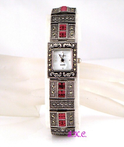 Watch Materials: Stainless Steel, and Marcasite and Tourmaline Palm stones