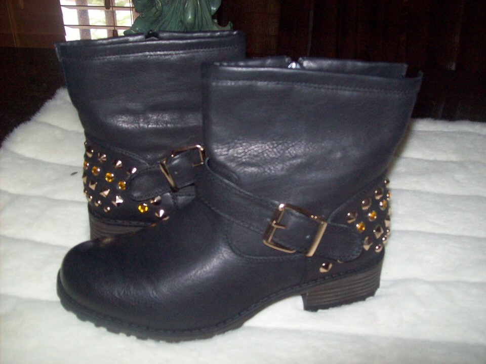 Via Pinky JAYDA 13 black embellished fashion studded ankle boots SZ 10 NEW