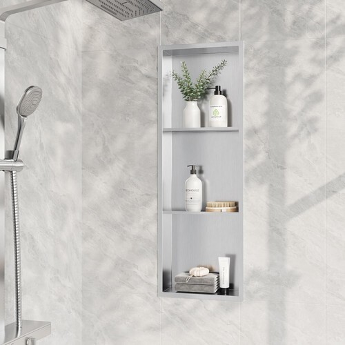The Shower Niche by BathPro is a modern and stylish addition to any shower wall. Made of durable stainless steel with a brushed gold finish, this 12x12 niche provides a sleek and contemporary look. Easy to install with a spread mounting type, this rectangular cubby shelf is perfect for storing shampoo, conditioner, and other shower essentials. The unisex design makes it suitable for any bathroom, while the high-quality materials ensure long-lasting durability.