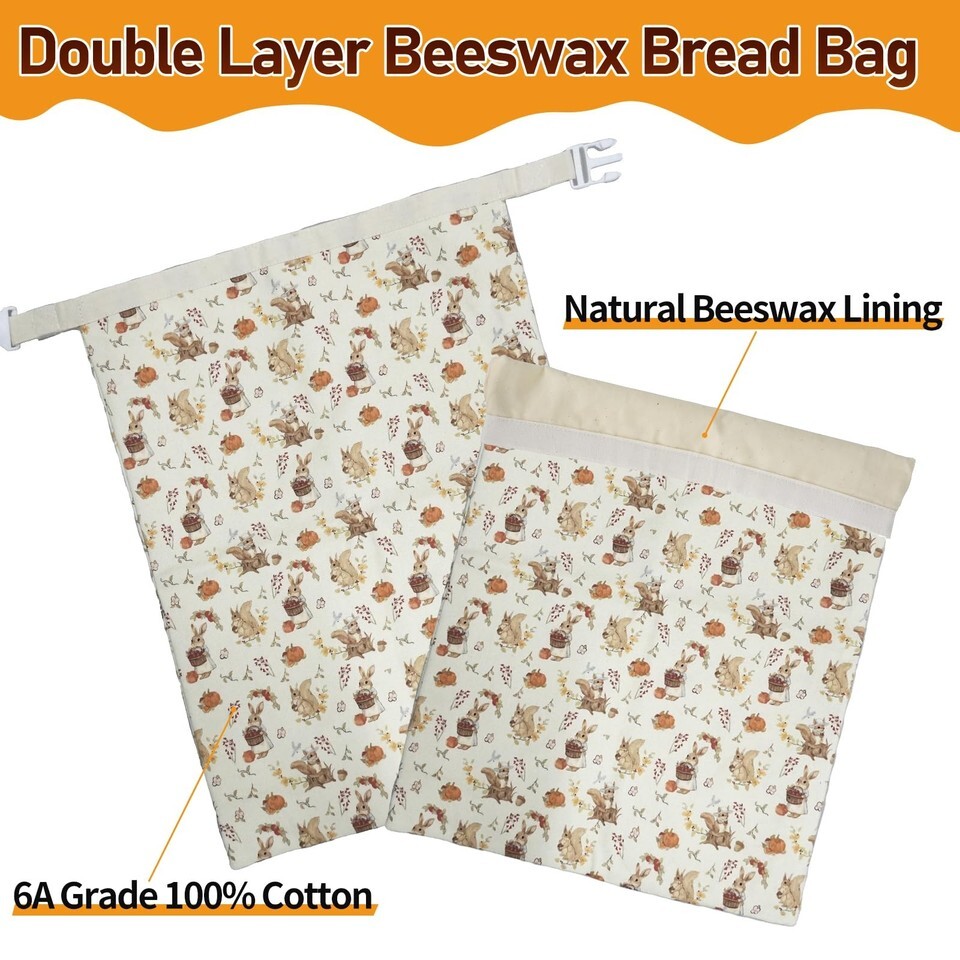 ?Fresh Bread?Our bread storage for homemade bread are lined with natural beeswax to form a breathable barrier. Lock in the moisture and aroma of the bread, and keep the homemade deliciousness of bread and baked goods. Let you taste the deliciousness as if it was just out of the oven every time you open the bag