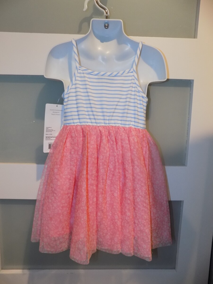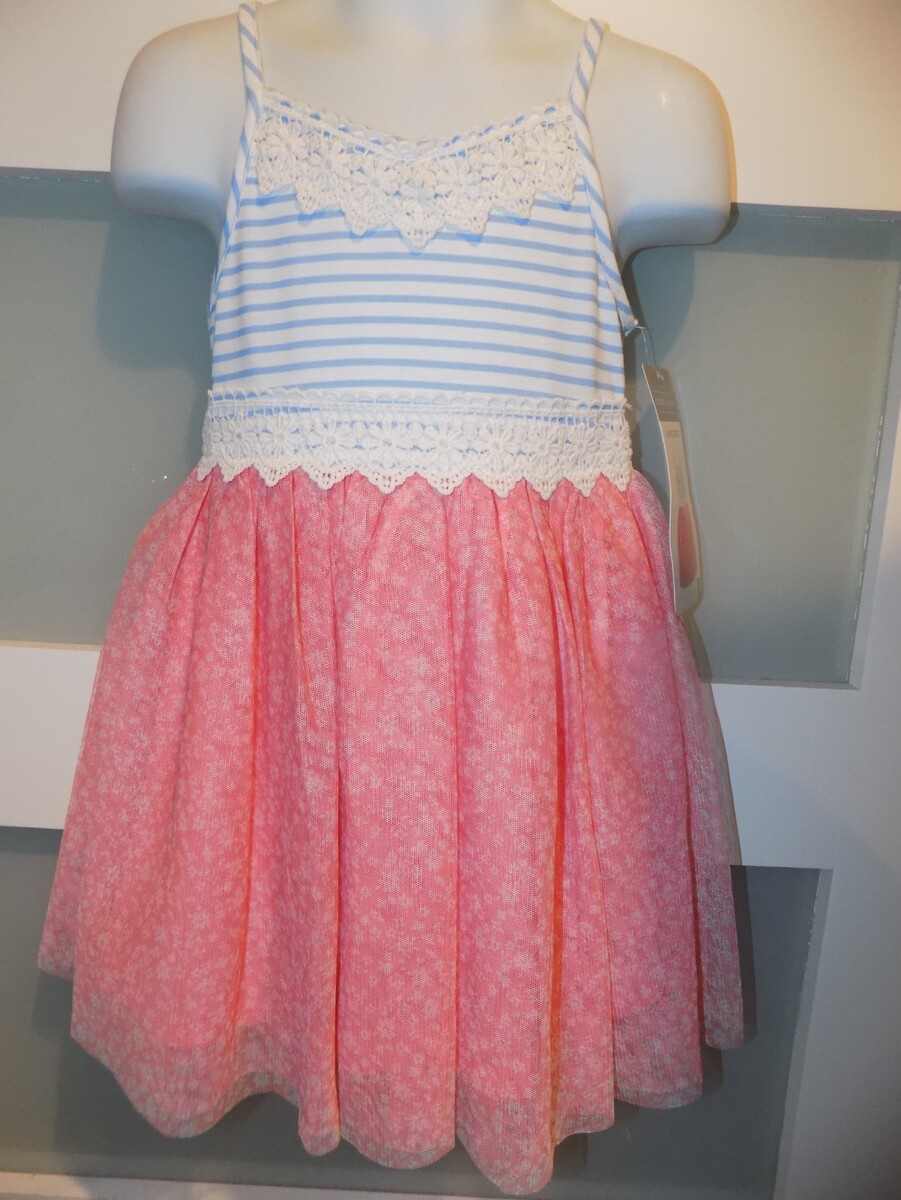 Berkley Jensen Blue Striped/Coral Floral Print Summer Dress Size 2T Girl's NEW